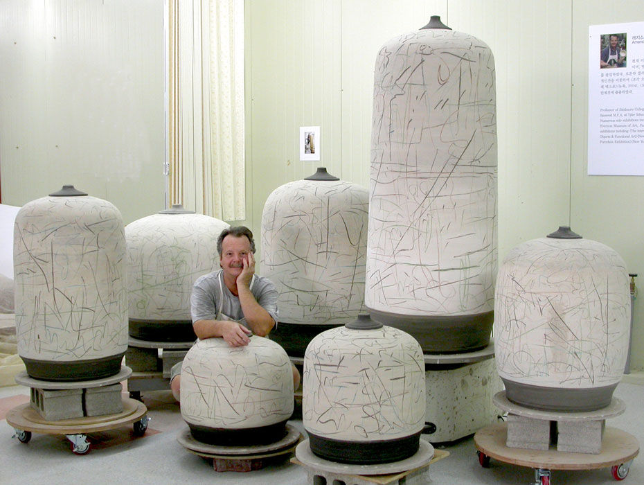 My methodology of making art is exploratory in nature. It deals with the direct manipulation of materials and processes. My vessel or sculptural forms are elegant and classical. The surface painting, drawing, and textural treatment on the other hand, is out of the Abstract Expressionist and Post Modernist Schools. I love the interplay that is created between the refinements of the form and the spontaneously decorated surface. It contrasts the elegant with the organic. I am tight and at the same time loose.